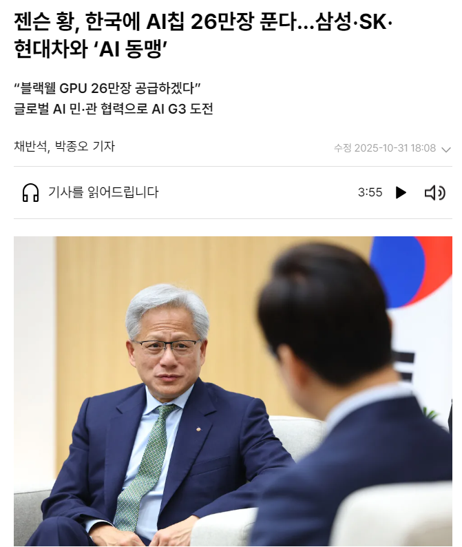 오늘 'GPU 26만 장'에 초점이 맞추어져 있지만 사실은 피지컬AI 협력이 더 중요해 보인다.